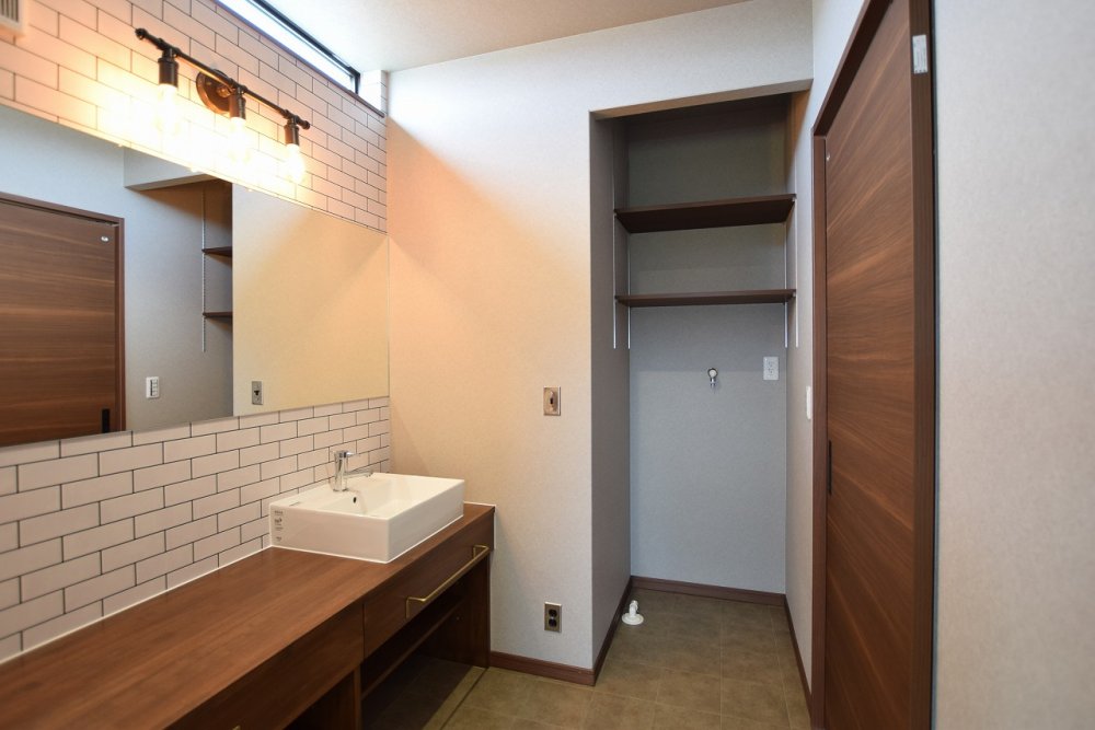 大きな鏡は女子の多いお施主様家族にピッタリ★ライトもめちゃくちゃお洒落でした!