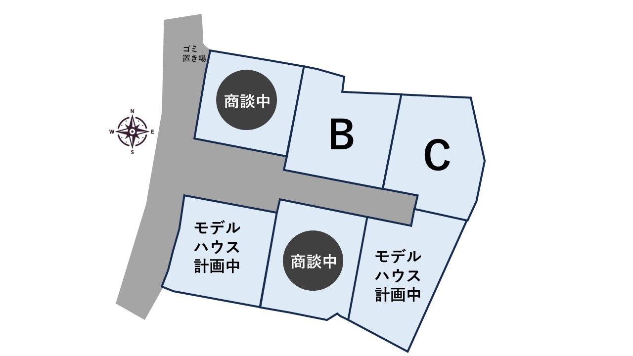 | 商談中:E号地 | 61.53坪 | モデルハウス計画中 |