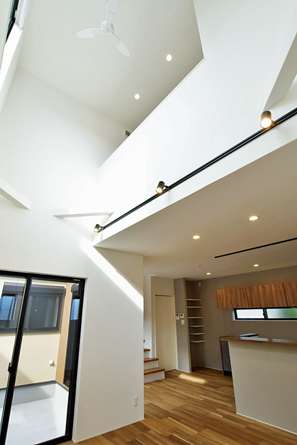 吹き抜けから明るい光の注ぐ、日当たりの計算された間取りです。