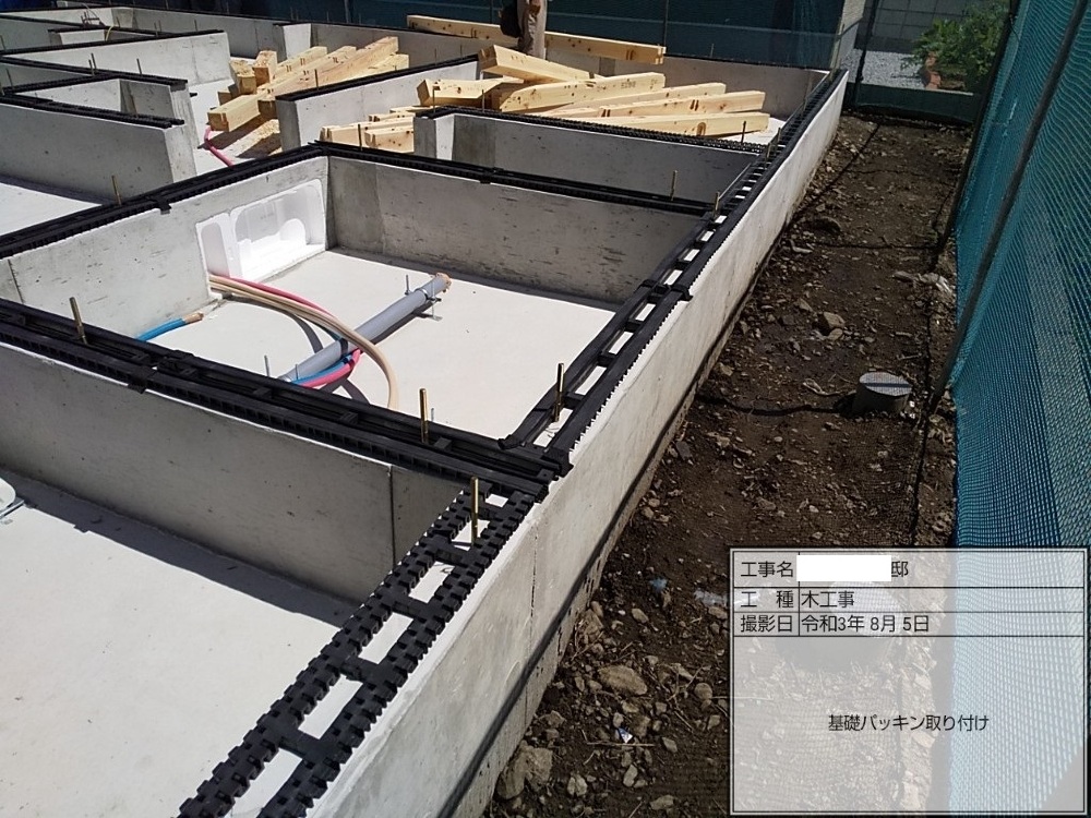 基礎パッキンは床下の換気を良くすると共に基礎と土台の縁を切り、コンクリートが吸った湿気を土台に上げない役目があります。