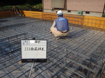 JIO(日本住宅保証検査機関)による配筋検査が行われました。鉄筋の間隔などしっかりと確認してくれます。