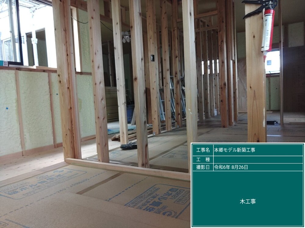 お家の内部を丁寧に造りこんでいく木工事の状況です。