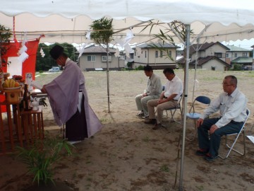 神様に土地を利用させてもらうことの許可を得ることで、工事の無事を祈りました。これからいよいよ工事がスタートします。