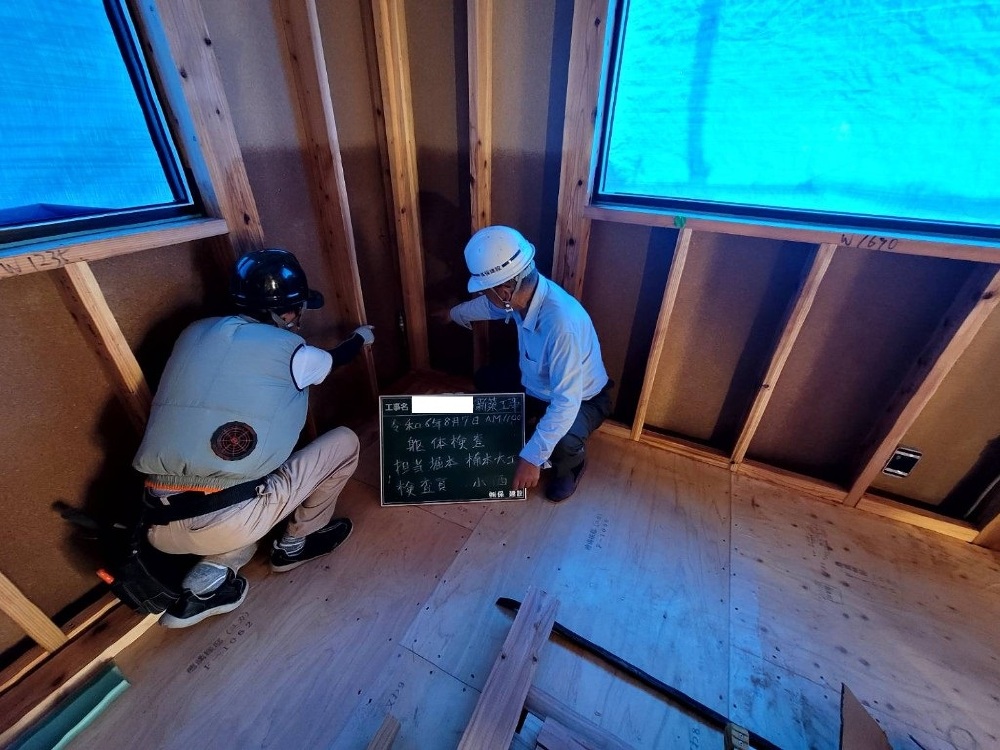 外部検査官により、躯体の検査を行いました。くぎ打ちのピッチ等も細かく検査されます。