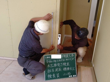 外部検査官により、躯体の検査を行いました。くぎ打ちのピッチ等も細かく検査されます。