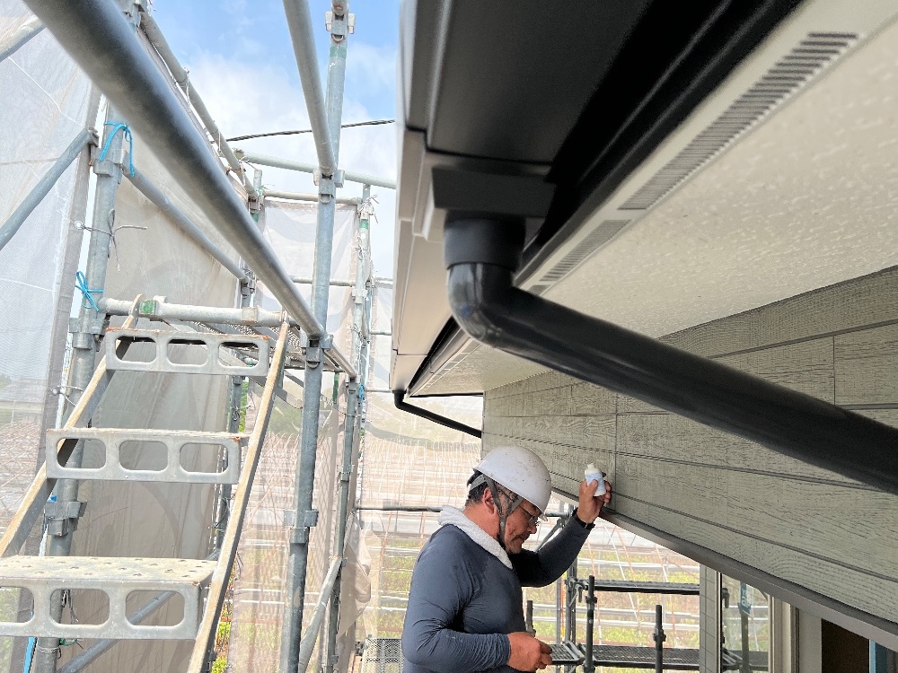 屋根には防水、断熱対策として「アスファルトルーフ」と「遮熱ノアガードⅡ(ゴムアスルーフ+遮熱シート)」を採用しています。工事用の足場が撤去されると間近で見ることは出来ませんが、お家を雨から守ってくれる重要な部分ですので丁寧に施工しています。