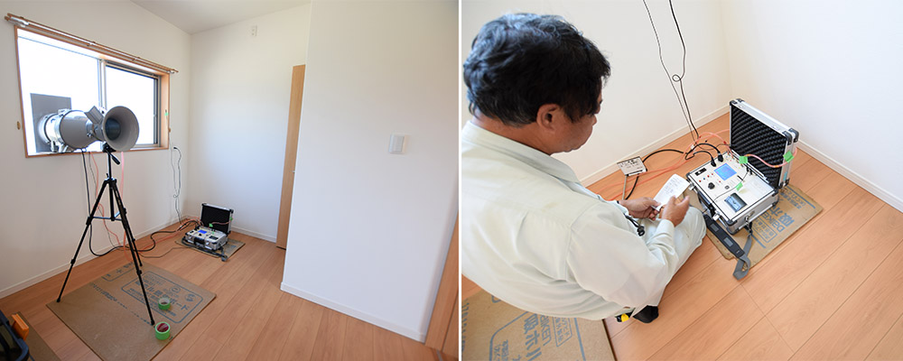 全棟気密測定を実施 気密試験は、実際に建てられた建物で、専門の機械を使って行います。 |