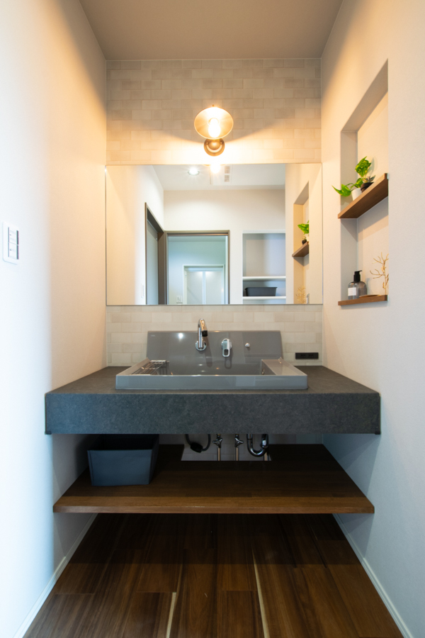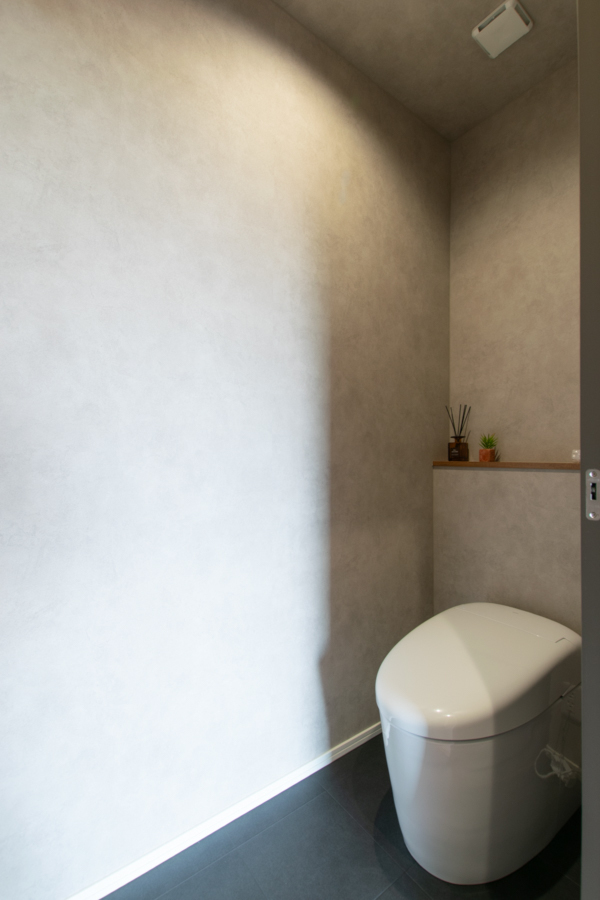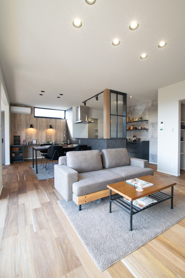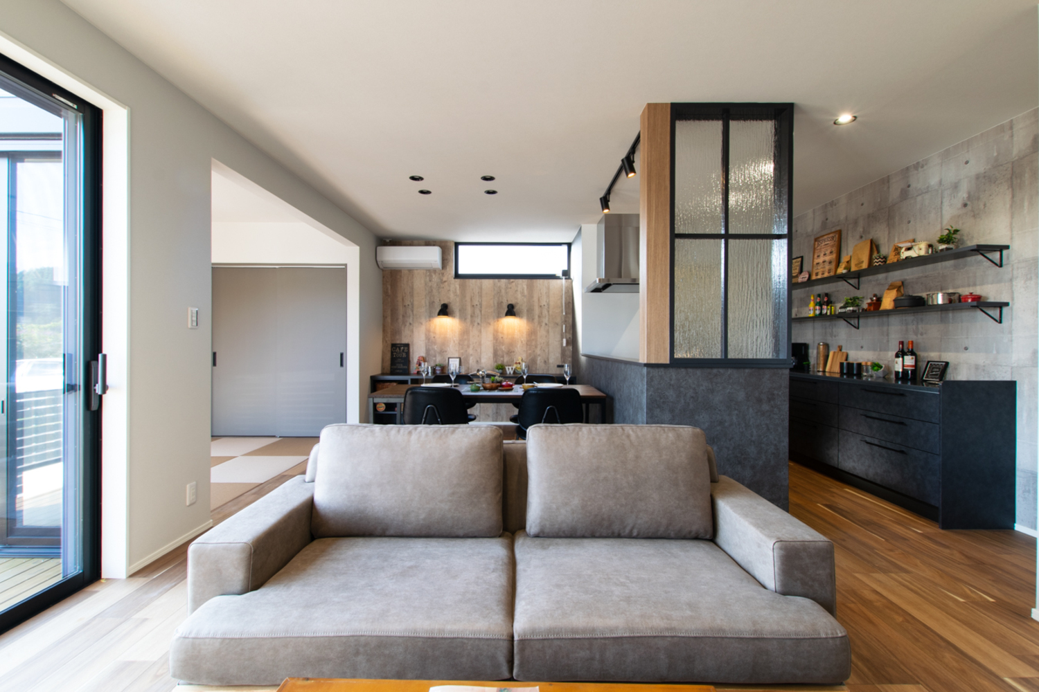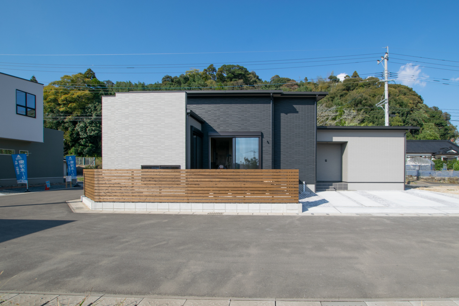 ホーム フォトギャラリー スタイル/Style すべて 素材にこだわった、上質カフェスタイルの平屋 素材にこだわった、上質カフェスタイルの平屋 モデルハウス公開中@国富町木脇 スタイル/Style|すべて 落ち着いたグレー×ブラックを基調とした、上質でスタイリッシュな平屋の住まい。シンプルな外観デザインに、プライベート空間であるウッドデッキは木格子で目隠しを。 大きな南向きの窓からは光がたっぷりと入り、室内と外を自然につなぐ心地よいお家です。画像のみを表示全 9 枚中 1 枚目を表示Next ≫ 落ち着いたグレー×木目が調和する、上質な大人空間のLDK。リビングとダイニングがゆるやかにつながり、家族それぞれが心地よく過ごせるレイアウトに。キッチンはLDKに溶け込むように装飾窓で上手に目隠しをしています。デザインと機能性を両立した住まいです。画像のみを表示全 9 枚中 2 枚目を表示≪ Prev|Next ≫ 木目×ブラックで落ち着きを感じるワークスペース。ダイニング横にあるので、家事の合間の作業や子どもの宿題スペースとしても使いやすい配置です。手元を照らすカフェ風のブラケットライトが集中できる雰囲気をつくり、棚収納で散らかりやすい小物もしっかり整理できます。家族の気配を感じながら快適に使える“ちょうどいい距離感”のワークスペースです。画像のみを表示全 9 枚中 3 枚目を表示≪ Prev|Next ≫ コンクリート調クロスやグレートーンで大人の雰囲気漂うダイニングキッチン。キッチン背面には腰高の引き出しとオープンな飾り棚を設け、見せる収納でお気に入りの食器や雑貨を飾れる楽しさも。ダイニングはキッチンと程よい距離感でつながり、家族の会話が自然と生まれるレイアウトに。素材感を活かしたデザインが、毎日の暮らしを心地よく演出します。画像のみを表示全 9 枚中 4 枚目を表示≪ Prev|Next ≫ 落ち着いた色味でまとめた畳スペースは、お料理中キッチンから確認しやすい配置にしています。LDKと緩やかにつながる心地よい空間です。地窓からやさしい光が入り、昼寝や読書など家族が寛げる場所に。普段はオープンで使い、来客時の客間や子どもの遊び場としても活躍します。画像のみを表示全 9 枚中 5 枚目を表示≪ Prev|Next ≫ 画像のみを表示全 9 枚中 6 枚目を表示≪ Prev|Next ≫ 石目調のエコカラットをアクセントにした落ち着きのあるリビング。光が差し込むたびに陰影があらわれ、上質で奥行きのある空間に。調湿・脱臭効果もあり、見た目だけでなく暮らし心地も快適にしてくれる仕上がりです。画像のみを表示全 9 枚中 7 枚目を表示≪ Prev|Next ≫ 落ち着いたグレーのボウルと重厚感のある耐水メラミンカウンター。リクシル新作のカスタムバニティーを採用しています。空間にホテルライクな雰囲気をもたらす造作洗面。大きなミラーが広がりを感じさせ、朝の支度もストレスなく快適です。ニッチ棚には日用品やお気に入りの小物を飾れて、使い勝手とデザイン性を両立。 オープン収納の棚も備え、家族分のタオルやストックもすっきり整理できる機能的な洗面スペースに仕上がっています。画像のみを表示全 9 枚中 8 枚目を表示≪ Prev|Next ≫ 落ち着いたグレー基調でまとめたタンクレストイレ。すっきりとしたフォルムが空間を広く見せ、最小限の凹凸で掃除もラクに。やわらかな灯りが壁に陰影をつくり、リラックス感のある上質な雰囲気を演出します。面台にはディフューザーやグリーンを置いて、さりげないアクセントも楽しめるトイレ空間です。画像のみを表示全 9 枚中 9 枚目を表示≪ Prev 一覧へ戻る スタイル/Style ソラマド 樹の香 平屋 ご入居後 店舗・施設 コレクション/Collection すべて 二階建て 中二階・スキップフロア 狭小地・変形地 すべて すべて すべて すべて すべて すべて|ALL リビング | Living キッチン | Kitchen ダイニング | Dining 洗面脱衣室・浴室 | Sanitary トイレ | Toilet 吹抜け | Atrium 玄関・ホール・シューズクローク | Entrance・Entrance hall・Shoe cloak 和室 | Japanese-style room 書斎・趣味室・フリースペース | Study・Hobby room・Free space 外観 | House exterior 階段 | Stairs 洗面室|Lavatory クローゼット | Closet