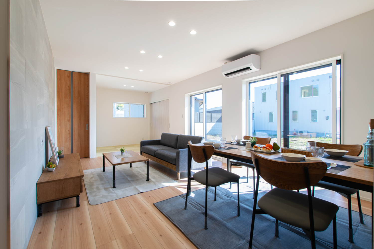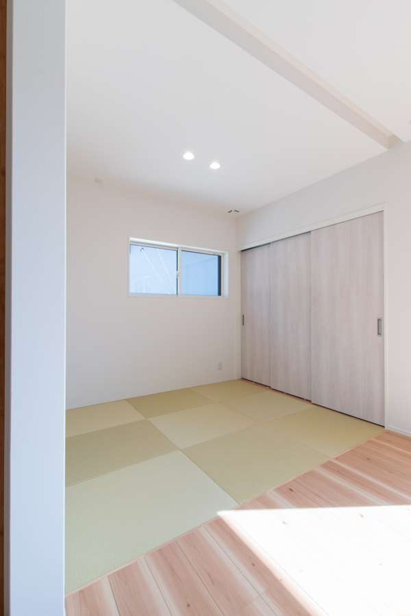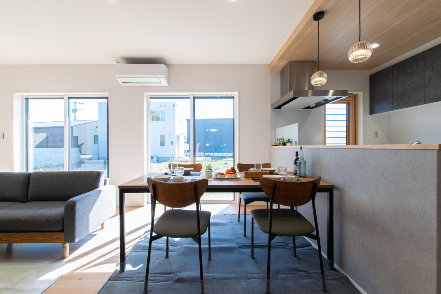 ホーム フォトギャラリー スタイル/Style すべて 家族が心地よく過ごす、ナチュラルモダンな家 家族が心地よく過ごす、ナチュラルモダンな家 モデルハウス公開中@国富町木脇 スタイル/Style|すべて シンプルなフォルムが印象的な外観。落ち着いたアッシュグレーとトリュフカラーの外壁に、玄関まわりの立体感をプラスすることで、街並みに自然と馴染みながらも存在感のある佇まいに仕上げました。 駐車スペースは常時3台、来客時にも追加で駐車可能なゆとりのある広さになっています。 画像のみを表示全 8 枚中 1 枚目を表示Next ≫ 大きな窓からたっぷりと光が差し込む、開放感のあるLDK。やさしい杉柄の床材とエコカラットを採用したリビングの壁が空間に落ち着きをもたらし、くつろぎの時間を心地よく演出します。 キッチン・ダイニング・リビングが緩やかにつながり、家族それぞれが思い思いに過ごしながらも、自然と気配を感じられる住まいです。画像のみを表示全 8 枚中 2 枚目を表示≪ Prev|Next ≫ 対面キッチンとほどよい距離感で配置したダイニングは、配膳や片付けがスムーズな使い勝手の良さが魅力。大きな窓から自然光が入り、食事の時間も明るく心地よく過ごせます。ペンダント照明が空間のアクセントとなり、日常の食卓から来客時まで、シーンに合わせて表情を変えるダイニングです。画像のみを表示全 8 枚中 3 枚目を表示≪ Prev|Next ≫ 木目の下がり天井で素材感を揃えたキッチンは、落ち着いたカラーで空間に上質さをプラス。 キッチンと同カラーの背面収納も充実し、使いやすさとデザイン性を両立したキッチンに仕上げました。勝手口からは庭・リビングと繋がるウッドデッキへアクセス可能で、お買い物帰りの荷物の出し入れやゴミ出しも快適です。画像のみを表示全 8 枚中 4 枚目を表示≪ Prev|Next ≫ 南向きの大きな窓からたっぷりと明るい光を取り込むリビング。ダイニングと横並びの配置で、家族が自然と集まりやすい間取りに。 明るくなりすぎない木の質感と落ち着いた色合いが、心地よいくつろぎの時間を演出します。画像のみを表示全 8 枚中 5 枚目を表示≪ Prev|Next ≫ リビングとつながる畳スペースは、くつろぎと実用性を兼ね備えた空間に。ロールスクリーンで仕切れる仕様で、普段は家族が気軽にくつろいで過ごせる場所に。暮らしに寄り添う和の空間です。画像のみを表示全 8 枚中 6 枚目を表示≪ Prev|Next ≫ 3部屋の居室の他に3.5帖の書斎。落ち着いたブルーのアクセントクロスに、木目天井を組み合わせたスペースです。プライベートな空間で窓から自然光が入り、読書や仕事に集中しやすい環境を整えました。趣味や在宅ワークなど、暮らしに寄り添う“自分時間”を大切にできる一室です。画像のみを表示全 8 枚中 7 枚目を表示≪ Prev|Next ≫ やわらかな光が差し込む、くつろぎの寝室。ヘッドボード代わりの造作カウンターは、スマホや小物を置ける実用的な設えに。シンプルな色合いでまとめ、一日の疲れをゆっくりと癒やせる、心地よいプライベート空間に仕上げました。画像のみを表示全 8 枚中 8 枚目を表示≪ Prev 一覧へ戻る スタイル/Style ソラマド 樹の香 平屋 ご入居後 店舗・施設 コレクション/Collection すべて 二階建て 中二階・スキップフロア 狭小地・変形地 すべて すべて すべて すべて すべて すべて|ALL リビング | Living キッチン | Kitchen ダイニング | Dining 洗面脱衣室・浴室 | Sanitary トイレ | Toilet 吹抜け | Atrium 玄関・ホール・シューズクローク | Entrance・Entrance hall・Shoe cloak 和室 | Japanese-style room 書斎・趣味室・フリースペース | Study・Hobby room・Free space 外観 | House exterior 階段 | Stairs 洗面室|Lavatory クローゼット | Closet